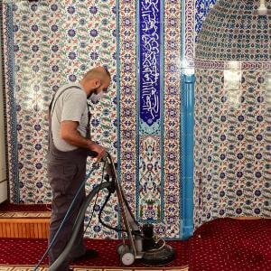 - نقوم بتنظيف السجاد والموكيت الموجود في المسجد من خلال التنظيف باجهزة البخار التي تعمل علي التنظيف والتجفيف في وقت واحد وبسرعه عالية جدا ، كما أنها تقوم بالقضاء علي جميع الأوساخ والبقع الموجودة بالسجاد والموكيت.